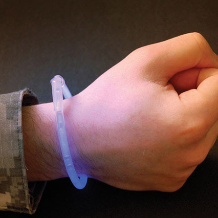 The 7,5” FlexBand wristband (19cm) is used to mark and identify. It’s possible to combine different FlexBand together to mark larger areas. To activate them: bend and shake. Just insert the free end of the band in the connecting end.
