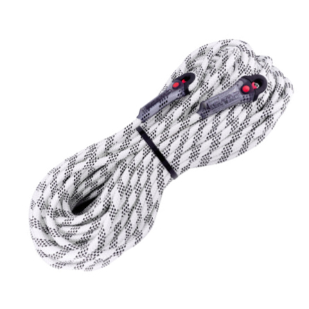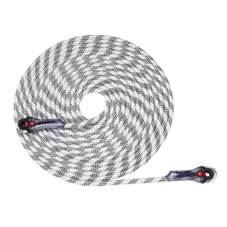 The Iridium 11 mm semi-static rope is cut to length and has fixed loops with stitching rated to 22 kN at both ends. The protective system for the rope loops and stitching is highly compact and durable, incorporating anti-rotation rubber for the carabiner to enhance stability and safety.