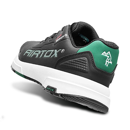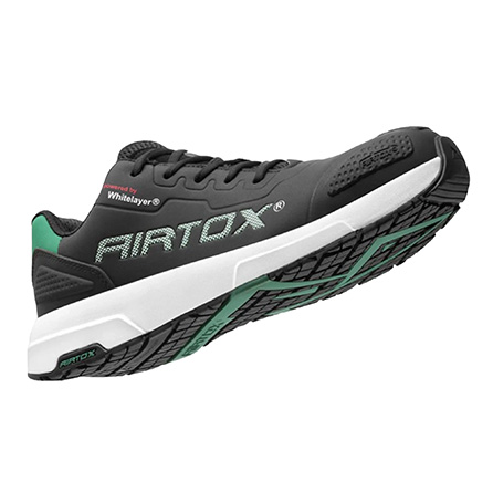 Airtox’s FL4 shoe belongs to the company’s new series and it is a lightweight Super Charged all-round safety shoe with StyroSoft midsole. StyroSoft offers an extremely high level of softness and lightness. It offers the distinctive Whitelayer® nail protector. Whitelayer® is extremely flexible and at the same time 15 times stronger than steel. The integrated Whitelayer® nail protector weighs only 32 grams and is thus 55% lighter than other fabric nail protectors. As an added benefit, the material is breathable and controls moisture. FL4 is 100% metal-free and with a 300°C heat-resistant NRT rubber outsole.