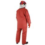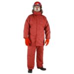 The FireBuddy Suit is a two-piece garment with a four-layer construction. The outer shell is aramid. The second layer is a waterproof breathable membrane. The third layer is an meta-aramid/para-aramid felted thermal barrier and the fourth layer is a modacrylic/Lenzing lining. The trousers have wide elasticated braces with adjusters and quick-release buckles. Optional fire resistant retro reflective tape can be fitted to the hem and ankles. Optional radio and thigh pockets can be fitted as well.