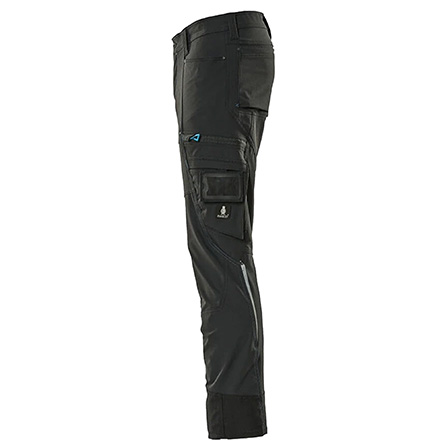The 17279-311 pants by Mascot offer unique freedom of movement and high comfort as they feature a completely elastic fabric that is lightweight and extremely durable. The fabric is waterproof and barely noticeable on the skin, as the pockets are integrated into the design. The ergonomically shaped trouser pockets are designed to follow the natural movements of the trousers. It features a detachable ID card holder that can be easily attached to the thigh pocket or D-ring – can be used on all products with a D-ring.