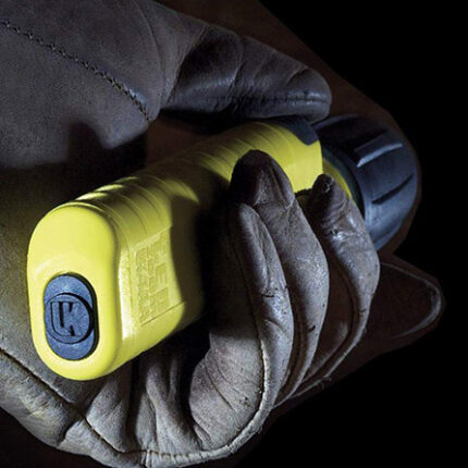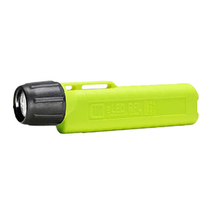 The ATEX TR-24B Safety Torch is a reliable, simple and cost effective portable light with right-angle body style. It is CE marked to the ATEX directive and IECEx certified for safe use in Zones 1 and 2 potentially explosive gas, vapour and mist atmosphere, where a T4 class permits, and Zones 21 and 22 dust atmospheres, with certified maximum surface temperatures of 95°C. T4 models give outstanding light output using advanced, long life xenon bulbs, set in a high quality parabolic reflector, coupled with alkaline cell approval, giving up to 12 hours of light output. The compact torch design has a high-grip ergonomic form with easy single-handed switching, even with gloved hands. The torch body offers high strength, and proven impact resistance even at sub zero temperatures, using carefully selected thermoplastic resins with excellent chemical resistance. Additionally, the rubber armoured lens ring and end cap give enhanced grip and shock protection. The lens is scratch and chemical resistant. The torch is sealed dust tight and protected from water immersion, with a certified IP67 enclosure. It incorporates a replaceable high strength thermoplastic belt clip for hands free use and allow straightforward battery and bulb replacement. A spare bulb is fitted in the bulbholder for quick and convenient replacement. It is supplied with wrist straps and clip rings.