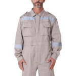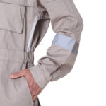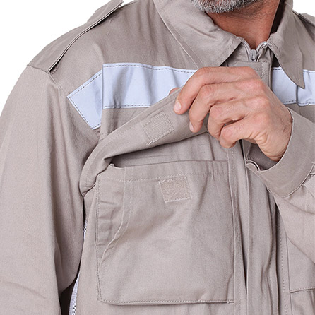Work boilersuit made of 100% cotton. It has reflective strips on the chest, arms and legs for increased visibility. The work boilersuit has an elastic waist, 7 pockets for large storage volume and a net under the arms while offering good sweat absorption. Characteristic of the work boilersuit are the special openings on the right and left of the waist that offer easy access to the inside of the form.